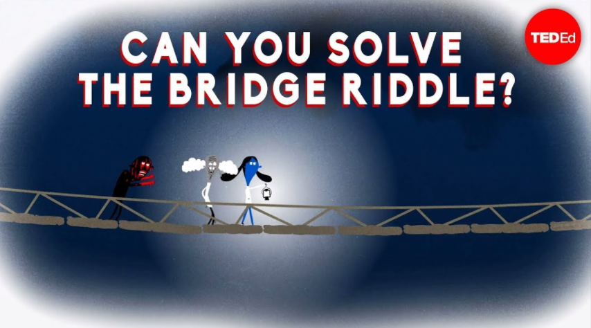 4. Can you solve the bridge riddle? This video outlines a puzzle, how do you get all four members of your team across the bridge and safe from the zombies when you’re on a time limit, and each member of your team has different limitations. This uses critical thinking and mathematical processes to solve the problem.