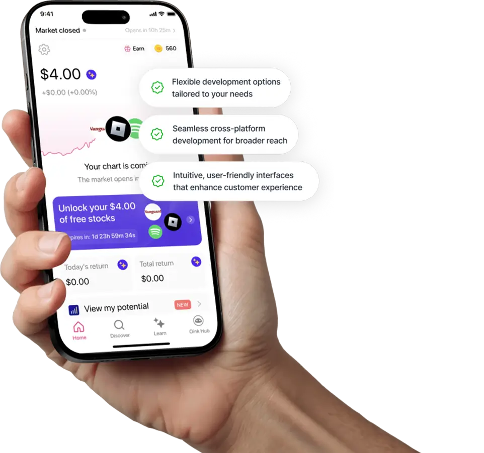 Our experts conduct deep UX research to identify how users will interact with your app and keep returning. Our designers then translate it into fluid layouts, screens, visual hierarchy, and interaction patterns tailored to iOS and Android. This keeps the experience familiar yet distinctive, improving usability across device types.